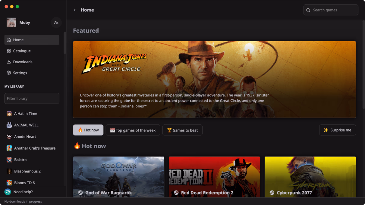 Hydra is a game launcher that allows you to download, play, track your stats and manage your games all in one place.